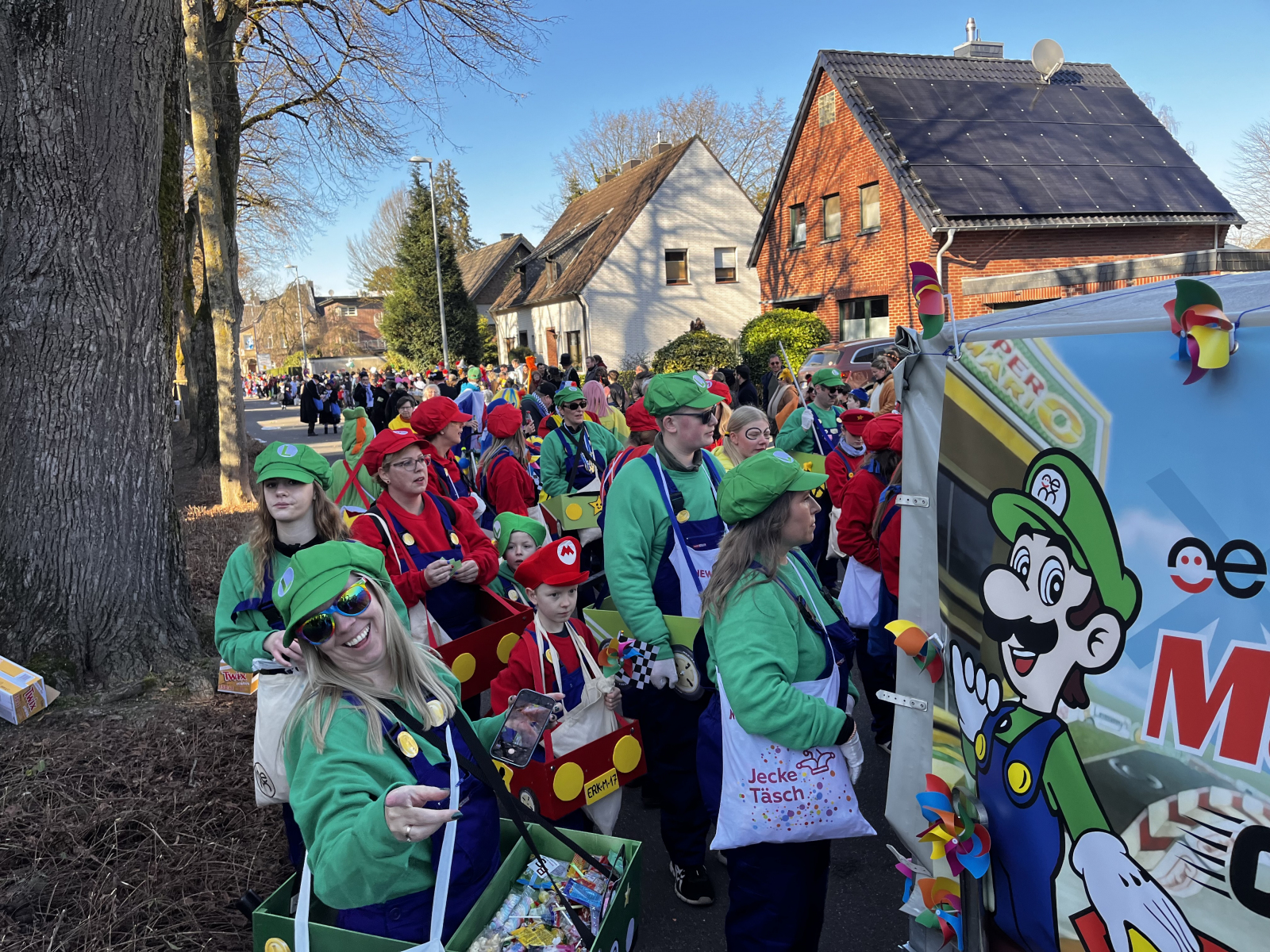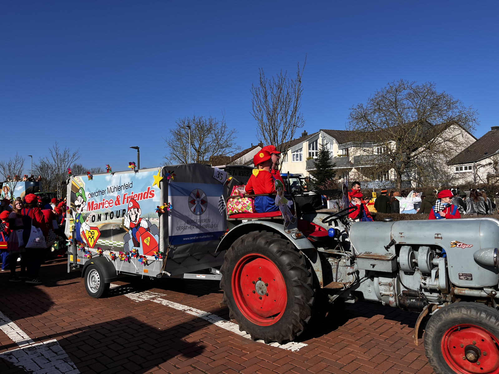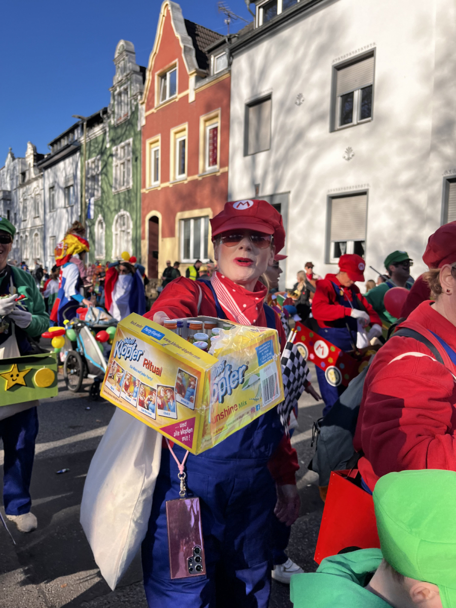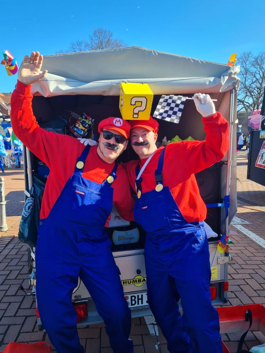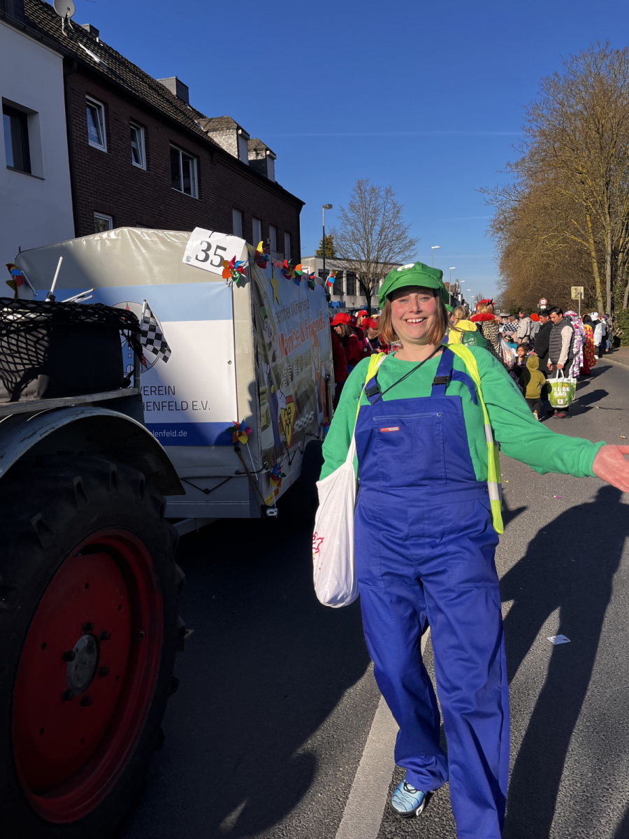Was für ein fantastischer Tag! Unsere Fußgruppe aus dem Oerather Mühlenfeld war am Rosenmontagsumzug in Erkelenz mit dem Motto „Marioe & Friends on Tour“ vertreten. Mit ca. 45 Teilnehmern und sommerlichen Temperaturen zogen wir durch die Innenstadt und sorgten für jede Menge gute Laune! Als Zugpferd hatten wir einen kleinen Traktor, der mit einem liebevoll dekorierten Anhänger ausgestattet war – ein echter Hingucker! Die bunten Kostüme und die fröhliche Stimmung haben nicht nur uns, sondern auch die Zuschauer begeistert.
