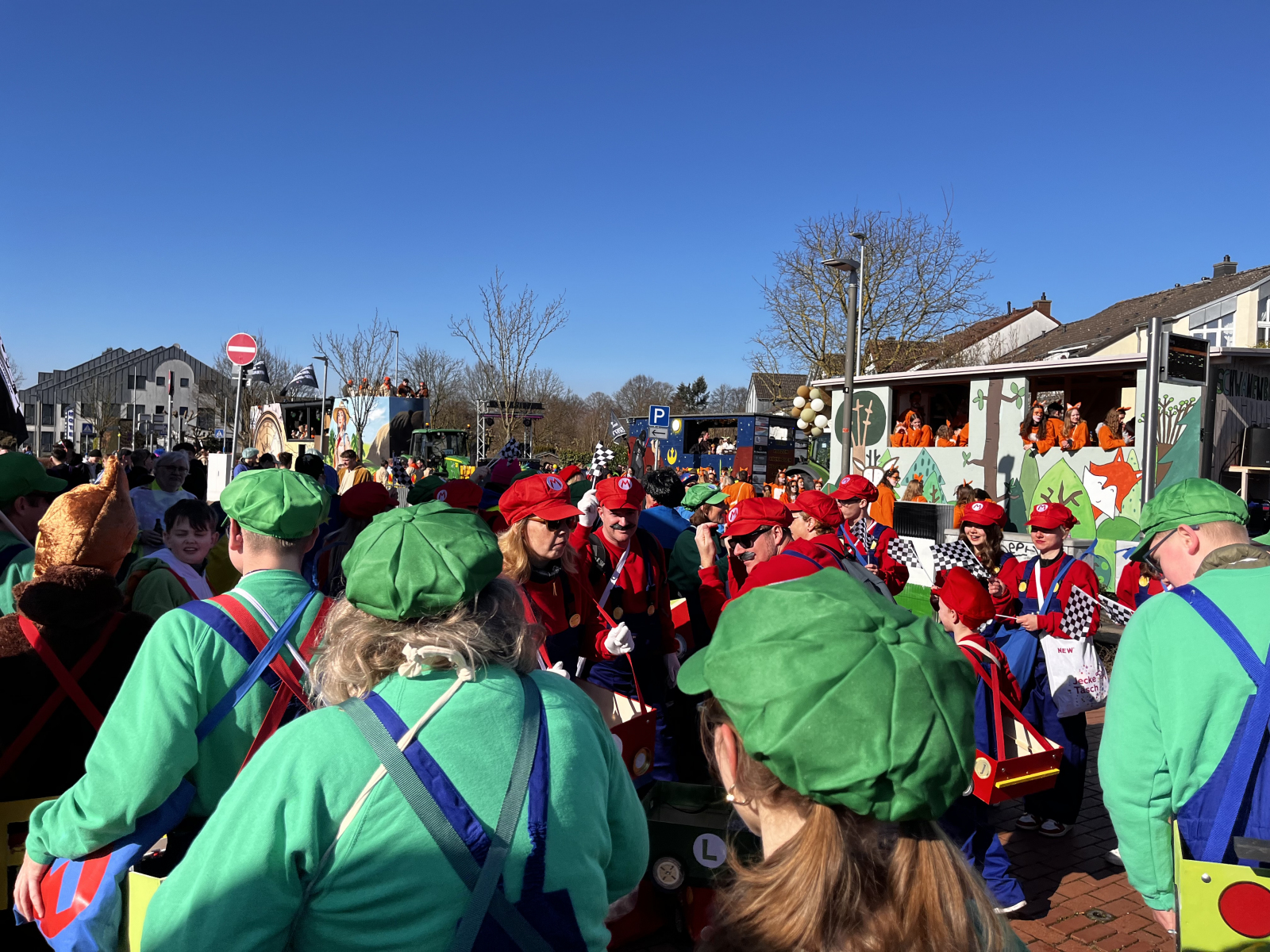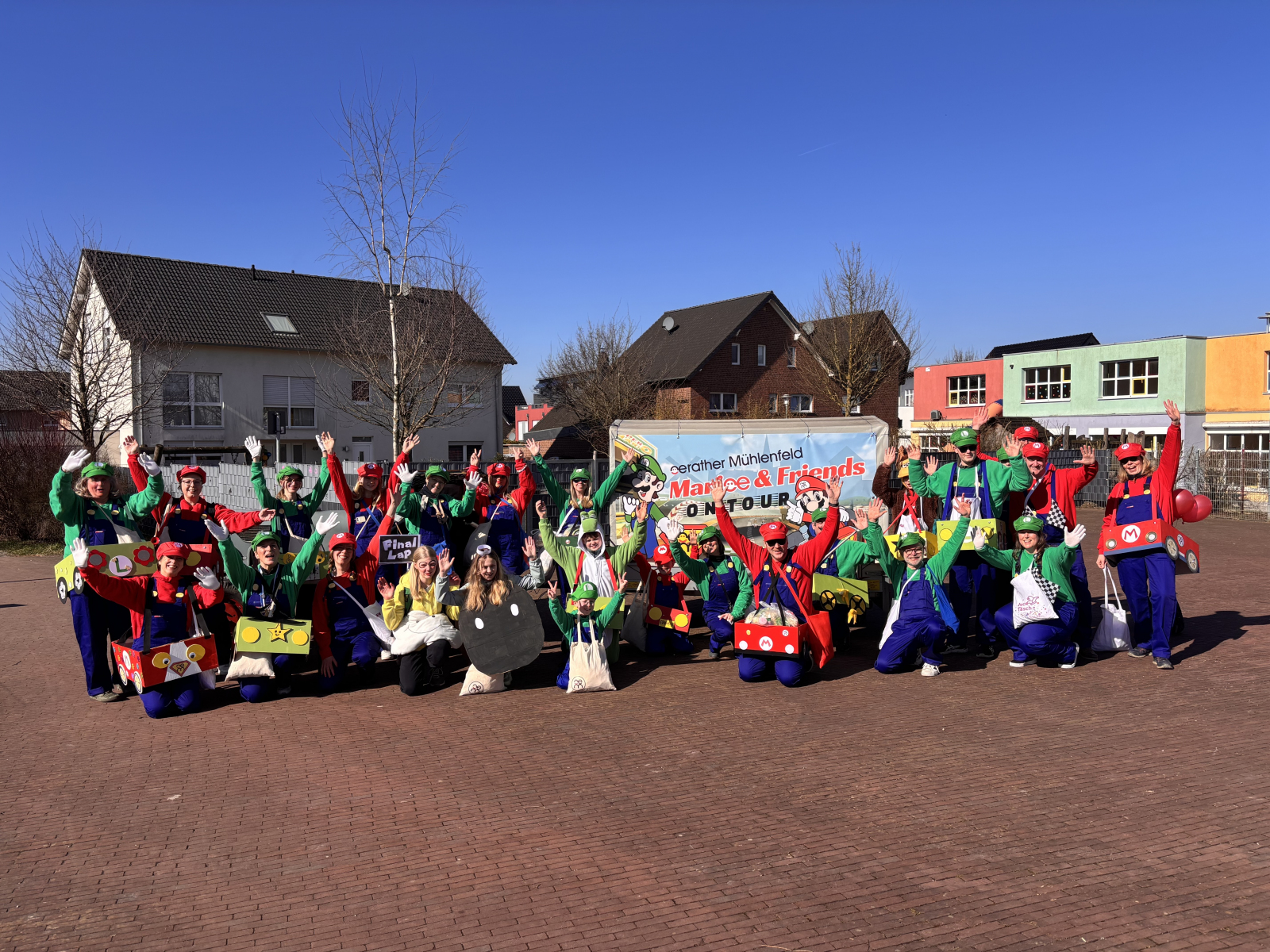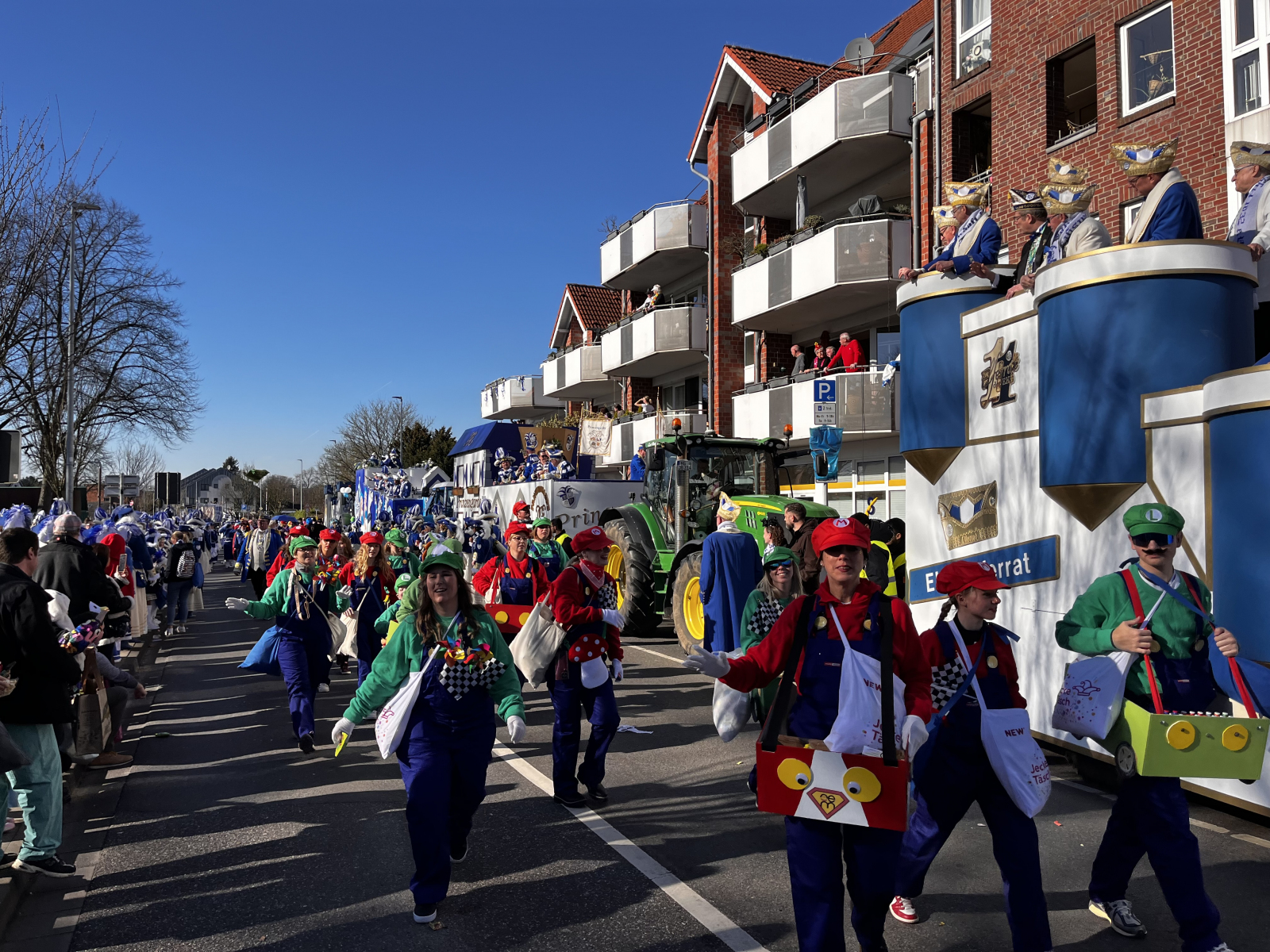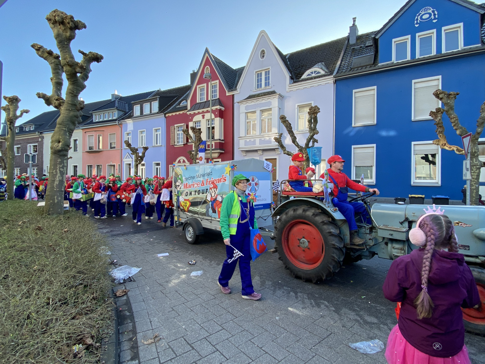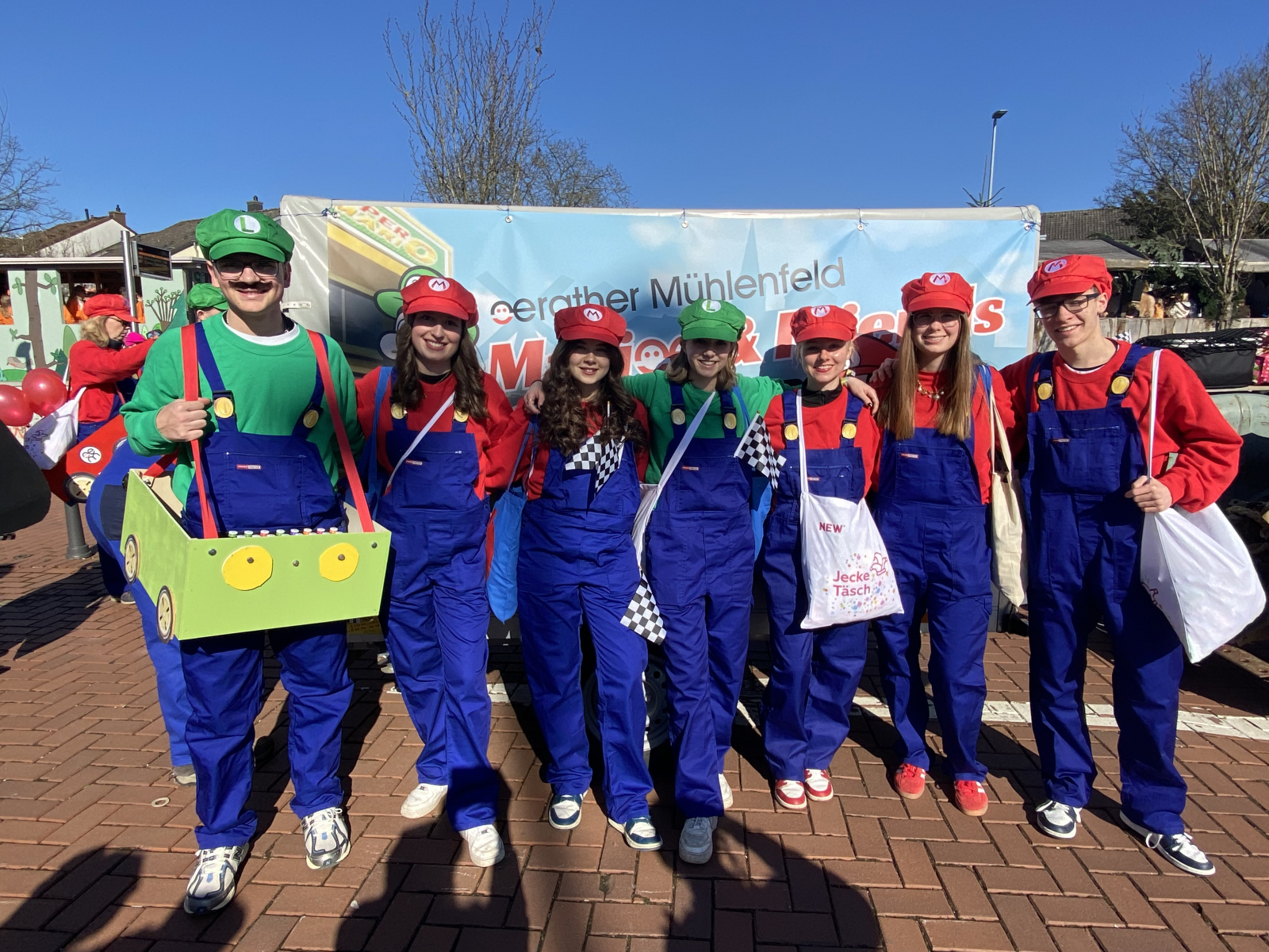 Was für ein fantastischer Tag! Unsere Fußgruppe aus dem Oerather Mühlenfeld war am Rosenmontagsumzug in Erkelenz mit dem Motto „Marioe & Friends on Tour“ vertreten. Mit ca. 45 Teilnehmern und sommerlichen Temperaturen zogen wir durch die Innenstadt und sorgten für jede Menge gute Laune! Als Zugpferd hatten wir einen kleinen Traktor, der mit einem liebevoll dekorierten Anhänger ausgestattet war – ein echter Hingucker! Die bunten Kostüme und die fröhliche Stimmung haben nicht nur uns, sondern auch die Zuschauer begeistert.